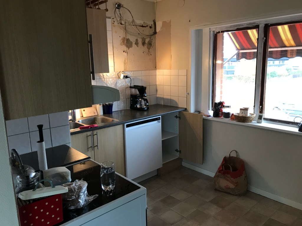Vi har äntligen börjat med köket! Det sista rummet som ska renoveras i vår lägenhet, och när det är klart blir det bilder på hela lägenheten. Stor förändring sedan vi var här och tittade för första gången för TRE år sedan. Ja, tiden springer väg, men försöker hänga på och sakta ner känslan.