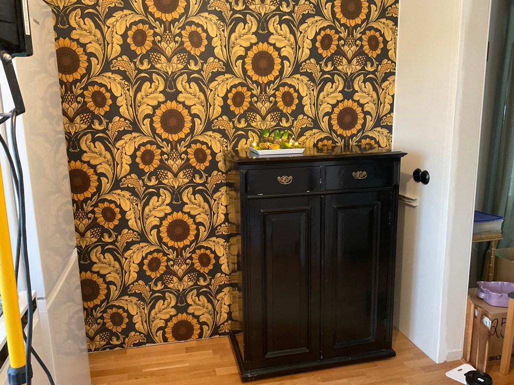 Idag tapetserade jag färdigt och satte skåpet på plats. Små steg framåt…