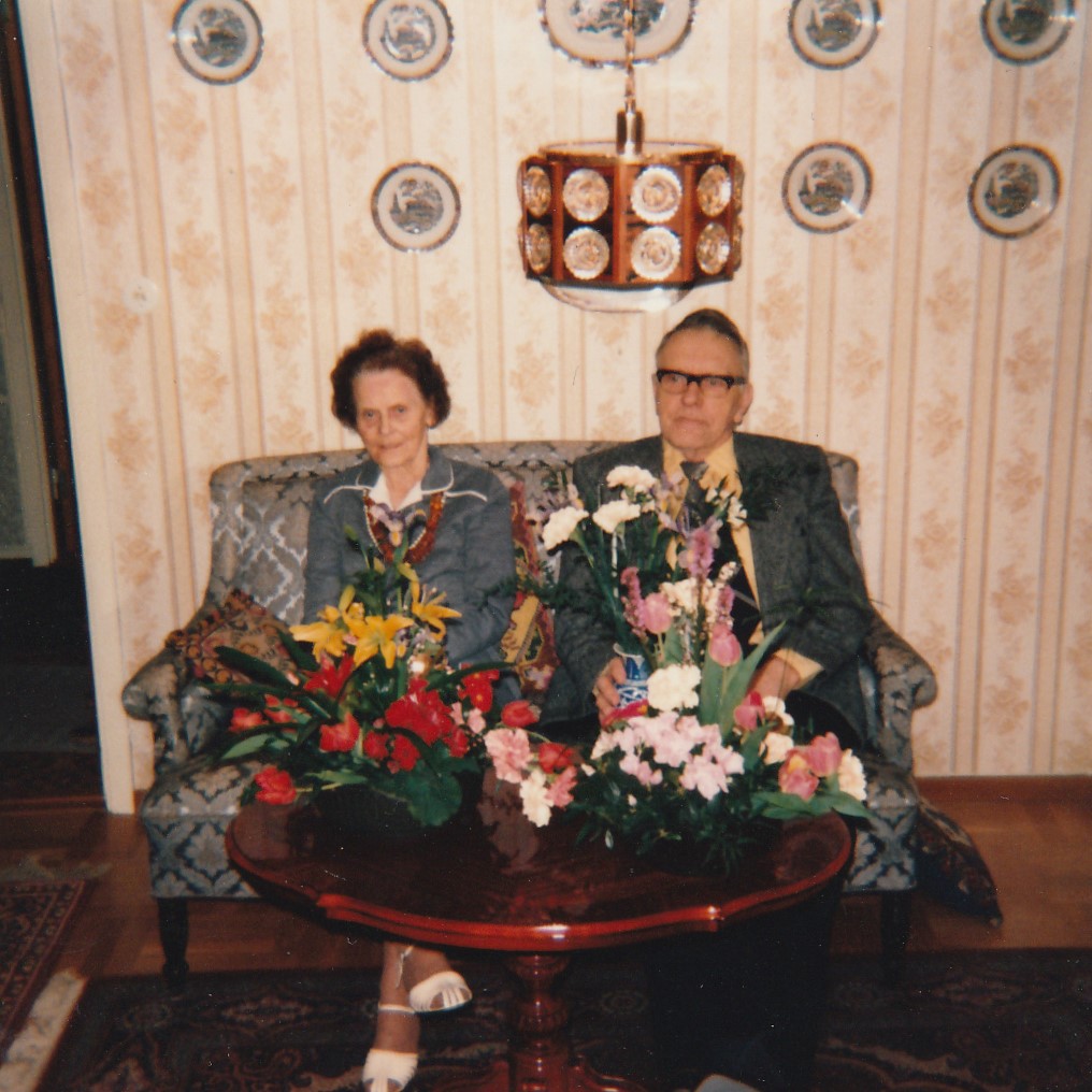 På 50-talet byggdes huset om så att frisersalongen fick lite större utrymme och därmed ändrade tobaksaffären också sitt utseende. Några år senare, 1958, såldes affären till Nell Skogh. Gustav behöll frisersalongen tills mitten på 70-talet, då han successivt avvecklade den på grund av sjukdom. Därefter sålde de även huset och flyttade till en lägenhet på Bryggerigatan där Ellen dog 1982. Gustav var ofta ute på byn och satt gärna på bänken utanför ‘Gästis’ och pratade med gamla vänner. När han dog 1992, 83 år gammal, saknades han av många. Själv kommer jag alltid att minnas honom som den glade och generösa ”farfar” han var.”