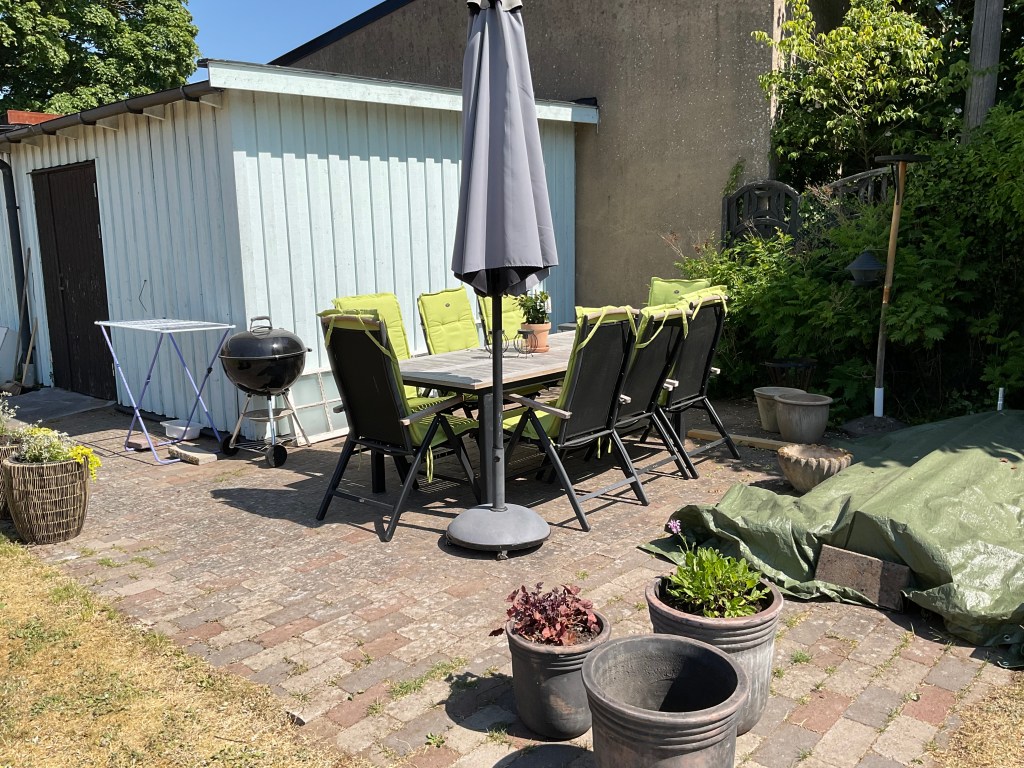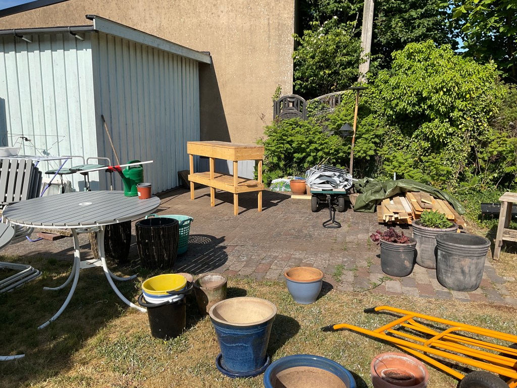 Sommaren har kommit med sol och värme, vilket är underbart för dem som älskar det. Jag gör inte det. När jag var tonåring drog jag ner persiennerna på mitt rum och lade mig på sängen, läste och lyssnade på musik. Sola? Åka till stranden? Näää, inget för mig, varken nu eller då. Däremot gillar jag verkligen tidiga sommarmornar och sena junikvällar. Då behöver man en trivsam uteplats, och det lyckades vi fixa till i helgen. Vi gjorde också upp en grovplanering över var gränsen för vår privata del ska gå i trädgården. Det blir bra, ett steg till framåt. Nu ska vi ägna sommaren åt att vara inomhus och renovera kök och försäljningslokal inför hösten.