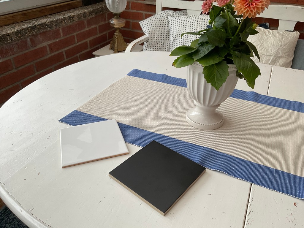 Sommaren har kommit med sol och värme, vilket är underbart för dem som älskar det. Jag gör inte det. När jag var tonåring drog jag ner persiennerna på mitt rum och lade mig på sängen, läste och lyssnade på musik. Sola? Åka till stranden? Näää, inget för mig, varken nu eller då. Däremot gillar jag verkligen tidiga sommarmornar och sena junikvällar. Då behöver man en trivsam uteplats, och det lyckades vi fixa till i helgen. Vi gjorde också upp en grovplanering över var gränsen för vår privata del ska gå i trädgården. Det blir bra, ett steg till framåt. Nu ska vi ägna sommaren åt att vara inomhus och renovera kök och försäljningslokal inför hösten.